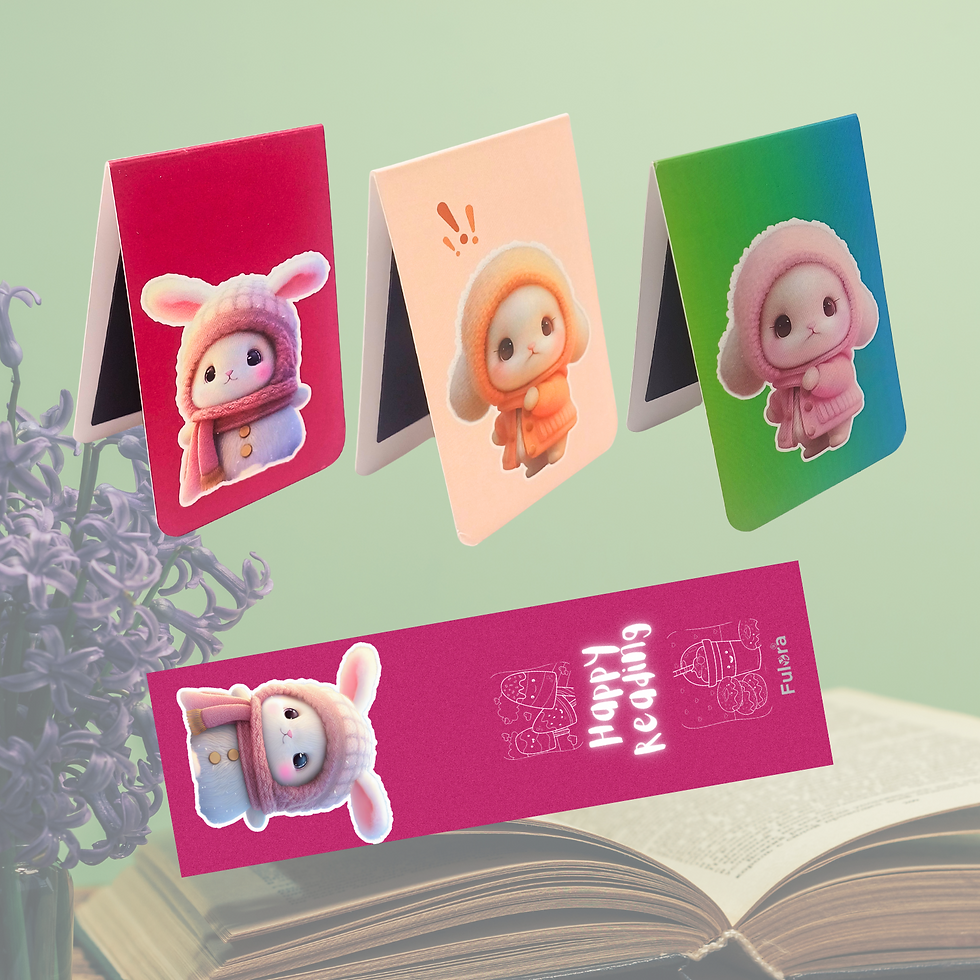 Fulora set of 3 (2x6 inch) cute rabbit cartoon matt laminated Magnetic Bookmarks
